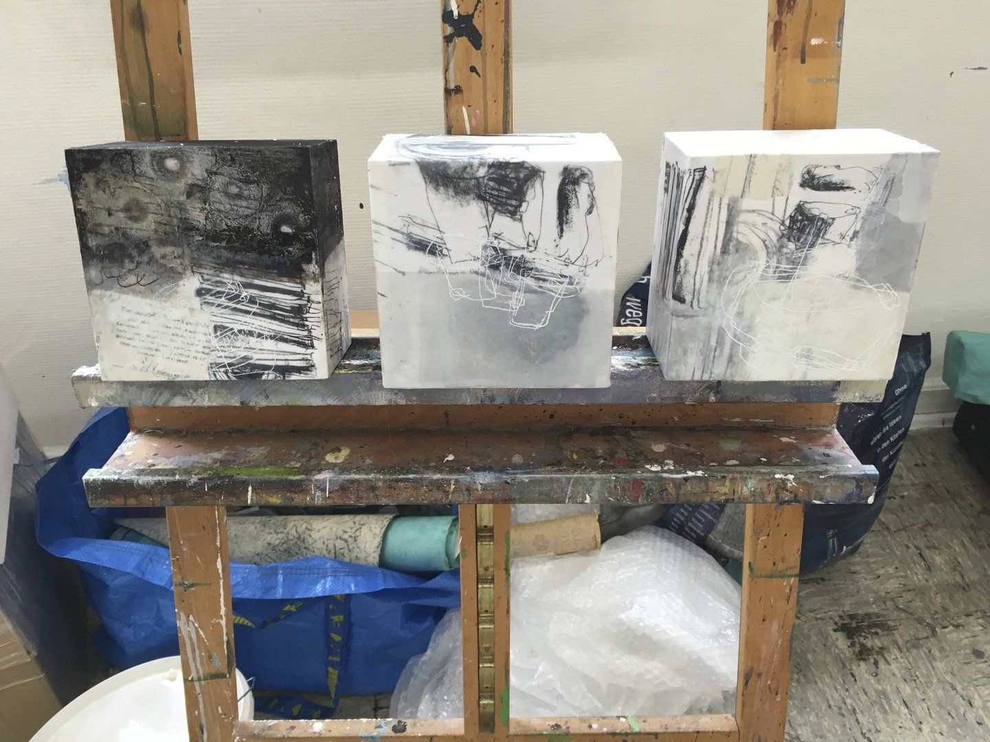 Acryl/Mischtechnik auf Holzkörper 2016, dreiteilig, je 15x15x10cm